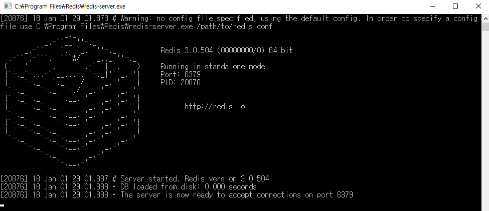 위 명령어를 순서대로 입력 후 다시 redis-server.exe를 더블클릭하여 실행시켜 줍니다.